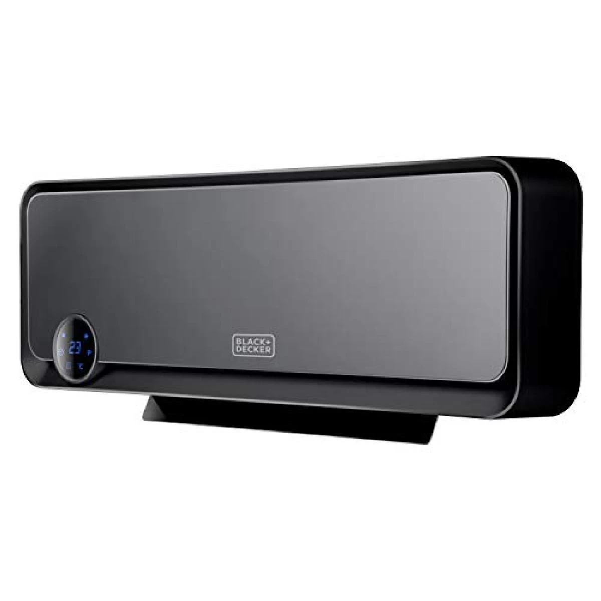Profitez de l’atmosphère idéale avec le radiateur mural en céramique BLACK+DECKER. Son système de chauffage en céramique PTC chauffe instantanément. De plus, grâce à son thermostat réglable, la température restera stable entre 10 et 49 °C aussi longtemps que vous en aurez besoin.Fonctionnalité:COMPLÈTEMENT PROGRAMMABLE : Avec un dispositif de programmation quotidienne et hebdomadaire, ainsi qu’un thermostat de 10 A 49ºc, vous pourrez régler le chauffage d’une manière précise selon vos besoins, aussi bien pour la température que pour le temps de fonctionnement.POUR TOUTES LES PIÈCES : Avec son support mural, placez-le où vous en aurez le plus besoin. Grâce à sa résistance à l’humidité IPX2, vous pourrez aussi profiter de toutes ses avantages dans votre salle de bain.MINUTEUR : Programmez le temps de fonctionnement jusqu’à 12H et profitez de son arrêt automatique. L’appareil s’éteint tout seul à la fin de la minuterie pour ne pas dépenser plus d’énergie.SYSTÈME DE SÉCURITÉ : Système de sécurité d’arrêt automatique en cas de surchauffe, ainsi que d’auto-arrêt quand il détecte une baisse de température, par exemple, quand une fenêtre s’ouvre soudainement.SYSTÈME DE CHAUFFAGE PTC : Son système de chauffage PTC (positive température coefficient), composé de petites plaques en céramique qui chauffent de manière ultra rapide et gardent très efficacement la température. Cela permet d’obtenir immédiatement de la chaleur, sans attendre.Spécifications:Marque: BLACK+DECKERCouleur: NoirSortie de chaleur: 2000 WattsMéthode de chauffage: RayonnantSource d’alimentation: Alimenté par pileNuméro du modèle de l’article: ES9350010BTempérature: 10 to 49 CHauteur: 18.5 cmLongueur du câble: 1.5 m