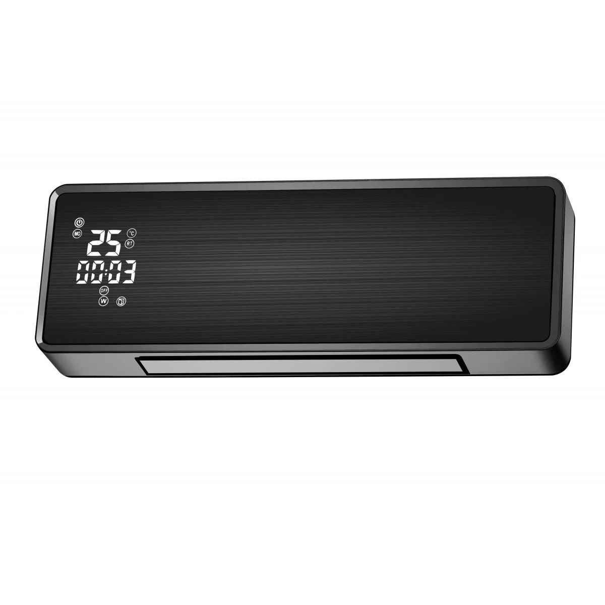 Son utilisation est très simple, il dispose d’un grand panneau digital LED à travers lequel vous pouvez contrôler la température et la programmer par heures et jours grâce à sa fonction de programmation hebdomadaire, vous pouvez également choisir le mode de fonctionnement qui s’adapte le mieux à vos besoins (ventilation, tempéré ou chaud). Parmi ses extras, vous trouverez la possibilité de le connecter au WIFI de votre maison et de le contrôler depuis l’appli TuyaSmart. D’un design noir élégant, compact (LxlxH : 45x11x18,5 cm) et léger (8kg), il est très facile à accrocher au mur, comprend une télécommande et chauffe des surfaces jusqu’à 20m2.