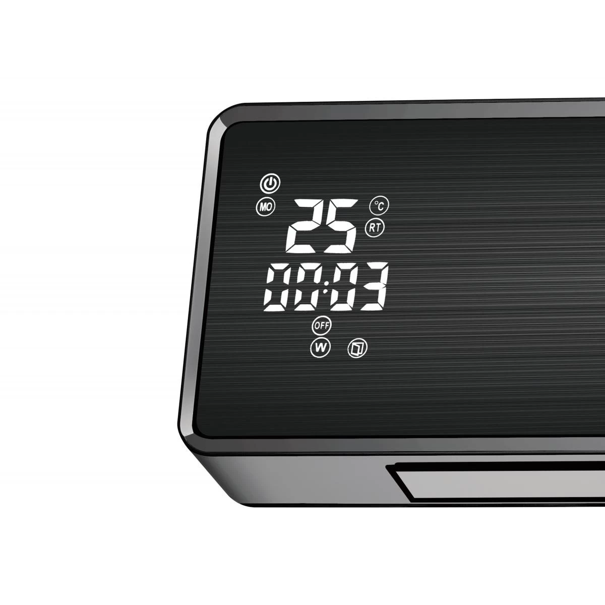 Points forts Purline Chauffage split mural 2000 W, façade en verre noir, contrôle WIFI, télécommande et minuterie