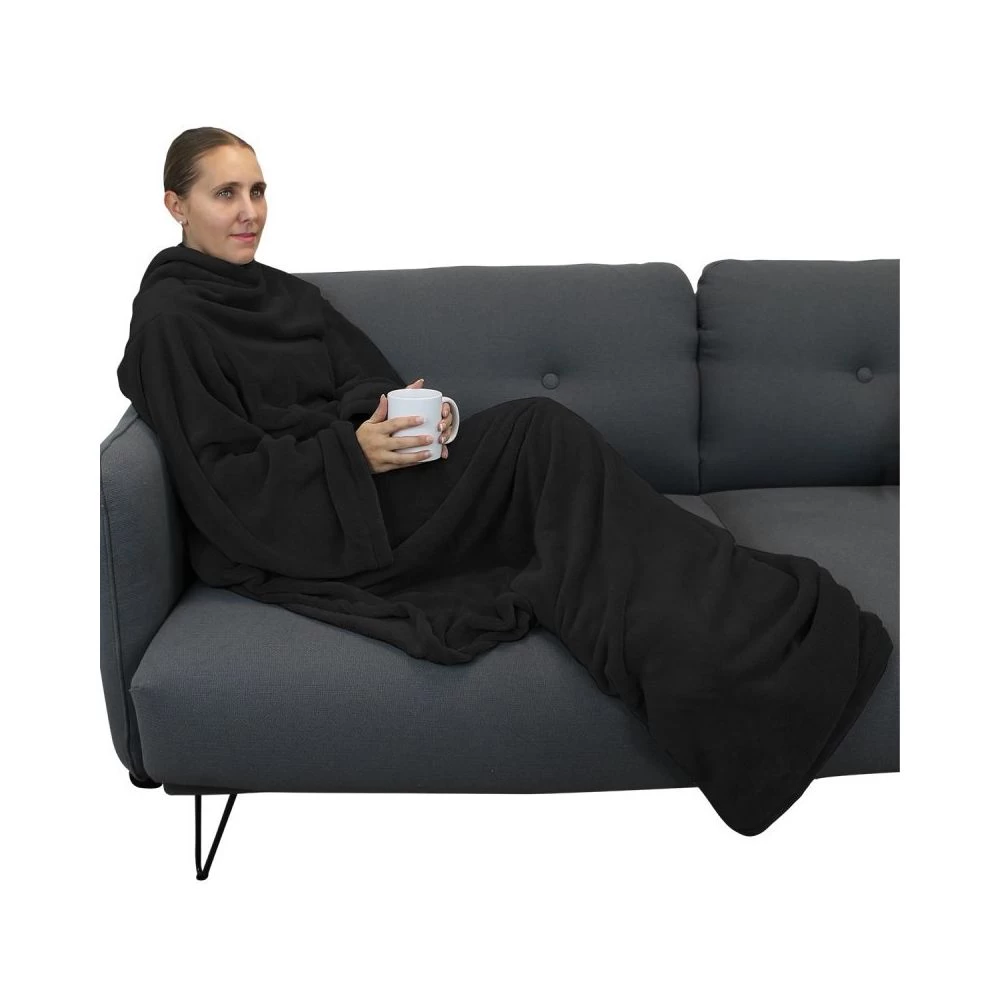 Points forts Vivezen Couverture polaire plaid intégral avec manches et poche – Enfant ou adulte jusqu’à 1.65m – Noir