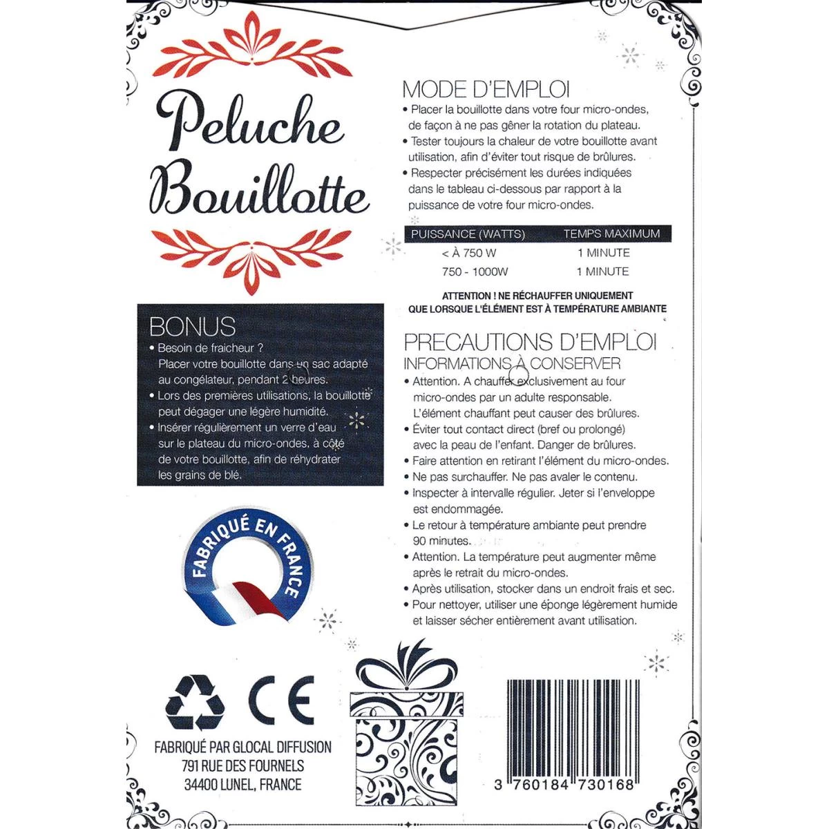 Adorable petite peluche ultra douce, garnie de grains de blé et de fleurs de lavande, votre magnifique peluche bouillotte se fera une joie de vous réchauffer ! Toutes nos bouillottes sont soigneusement fabriquées en France. Du blé de qualité récolté entre Toulouse et Montpellier, de véritable fleur de lavande cueillies en Provence et des atelier situés dans le sud de la France.