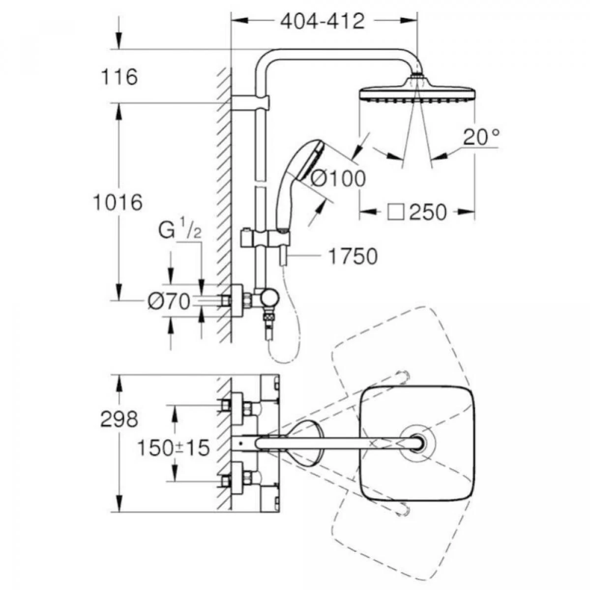 Points forts Grohe Grohe Colonne de douche avec mitigeur thermostatique Vitalio start system 250 Cube