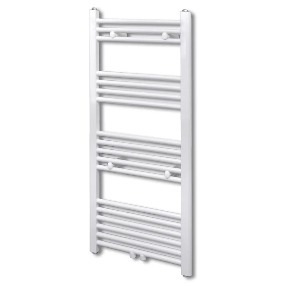 ICAVERNE Joli Chauffage et climatisation collection Kiev Radiateur Sèche-Serviettes Vertical pour Salle de Bain 600x1160mm Ce radiateur sèche-serviettes est idéal pour les salles de bain, cuisines ou vestiaires. Tous les accessoires sont fournis tels que 4 supports muraux et 4 vis. Ce porte-serviettes est épais, d’une grande qualité pour mieux chauffer votre pièce et vos serviettes. Couleur : blanc Matériau : acier Style : Droit Sortie : 560 W (422 BTU) Dimensions : 600 x 1160 mm (l x H) Distance entre les centres de tuyaux : 550 mm Distance entre le mur et l’avant du radiateur: 50 mm Nombre de barres transversales : 18 avec un diamètre de 22 mm, divisé en 4 sections de 3, 4, 5, 6 Montage mural Pack de fixation : Inclus