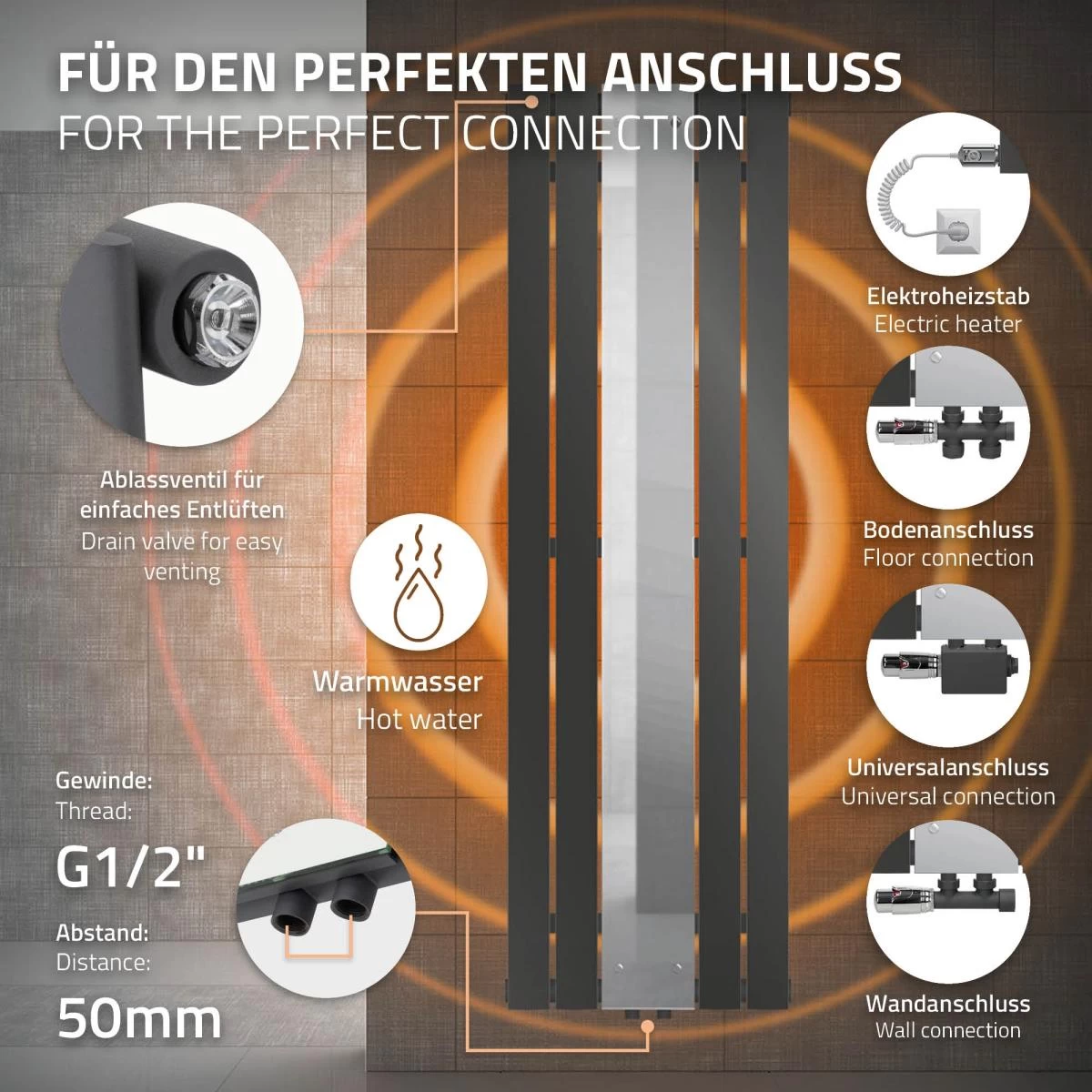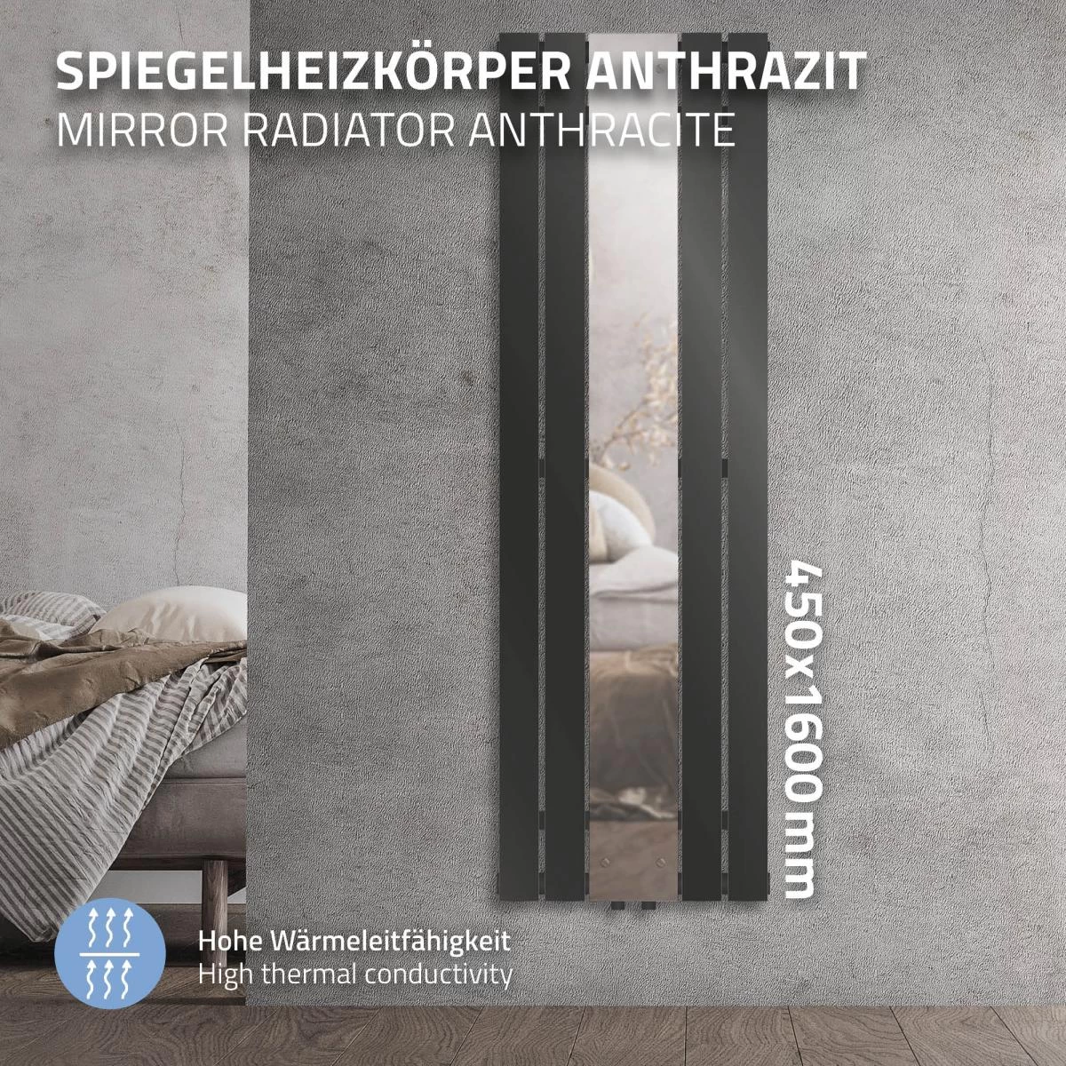 Points forts ML design modern living Radiateur de salle de bain plat avec miroir 1600×450 mm Anthracite ML-Design