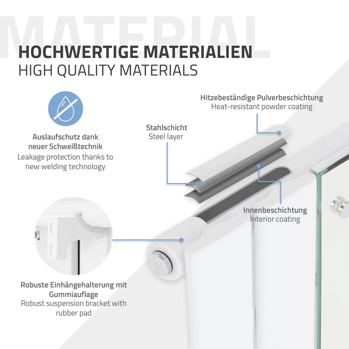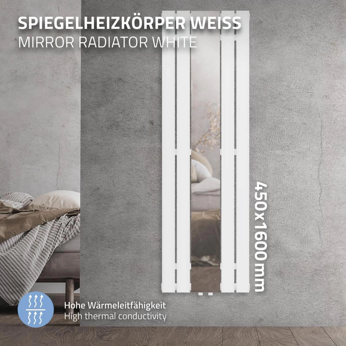 Points forts ML design modern living Radiateur de salle de bain plat avec miroir 1600×450 mm blanc ML-Design