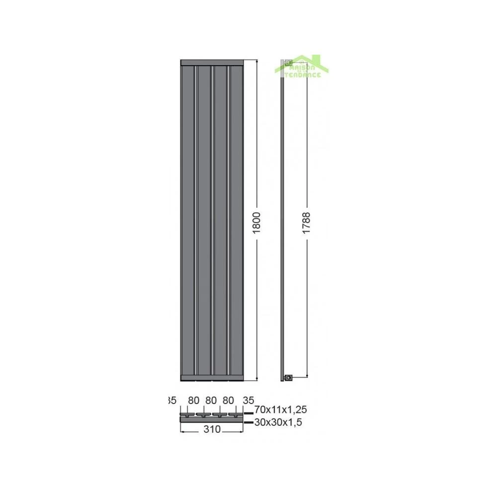 Livré avec le kit complet de fixations (vis…etc.) pour une installation verticale.