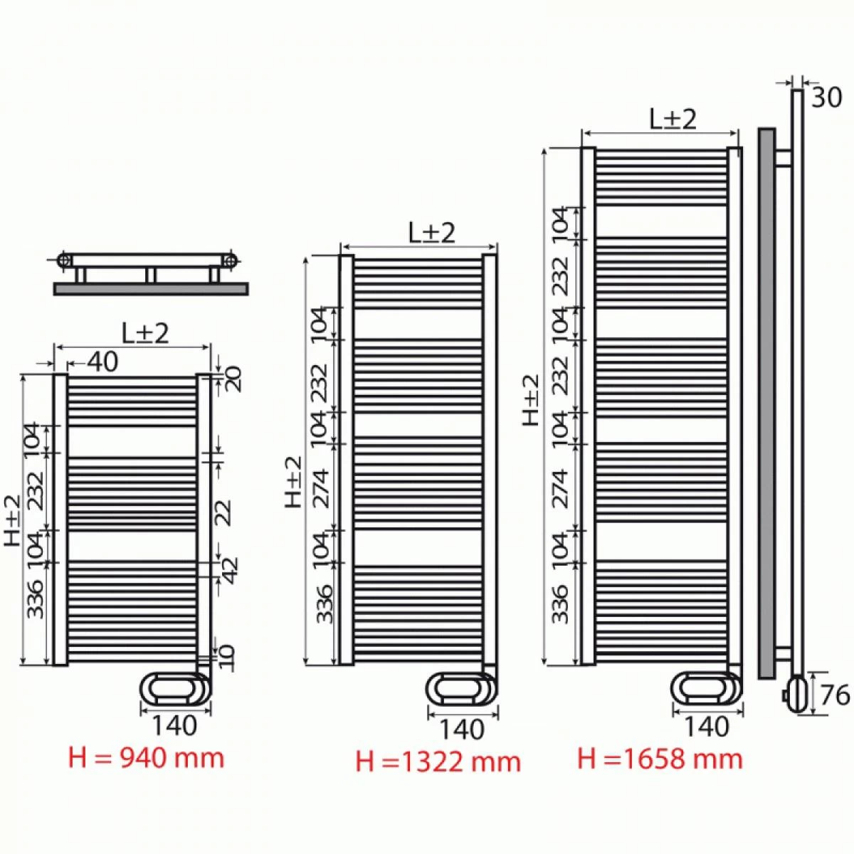 Points forts Irsap Radiateur sèche serviettes FLECHE électrique blanc hauteur 1658 mm largeur 600 mm 1000