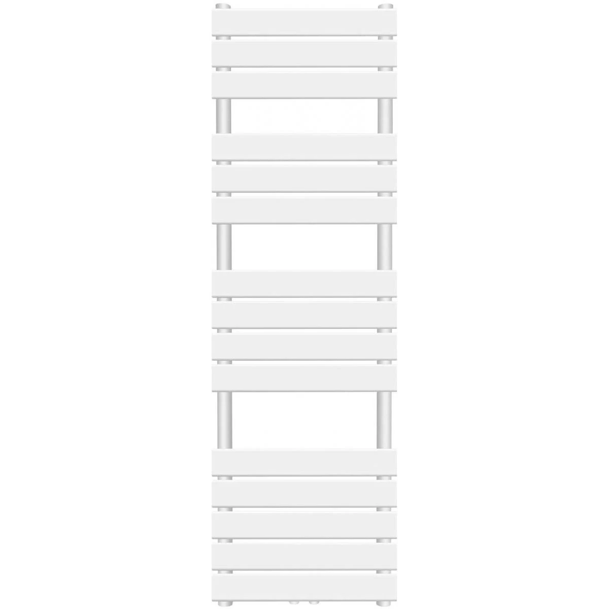 Type de sèche-serviette: panneau plat – montage au mur Vertical Couleurs disponibles: blanc ou anthracite Dimensions totales (H/l): 1500×450 mm Poids: env. 16,2 kg Nombre de barres: 3+3+4+5 (15) Puissance calorifique: env. 705 W à 75° C (débit) – 65° C (retour) – 20° C (température ambiante) Profils en D verticaux: 38×1,5 mm Tubes ronds horizontaux: 68x12x1,5 mm Profondeur (avec attache): de 93 à 103 mm Dimension de connexion: 50 mm Filetage de connexion: G1 / 2 ” Pression testée à 5 bar, pression de fonctionnement maximale 6 bar Kit de montage inclus Pièces nécessaires: vannes de radiateur (non incluses) Matériau: acier Q195