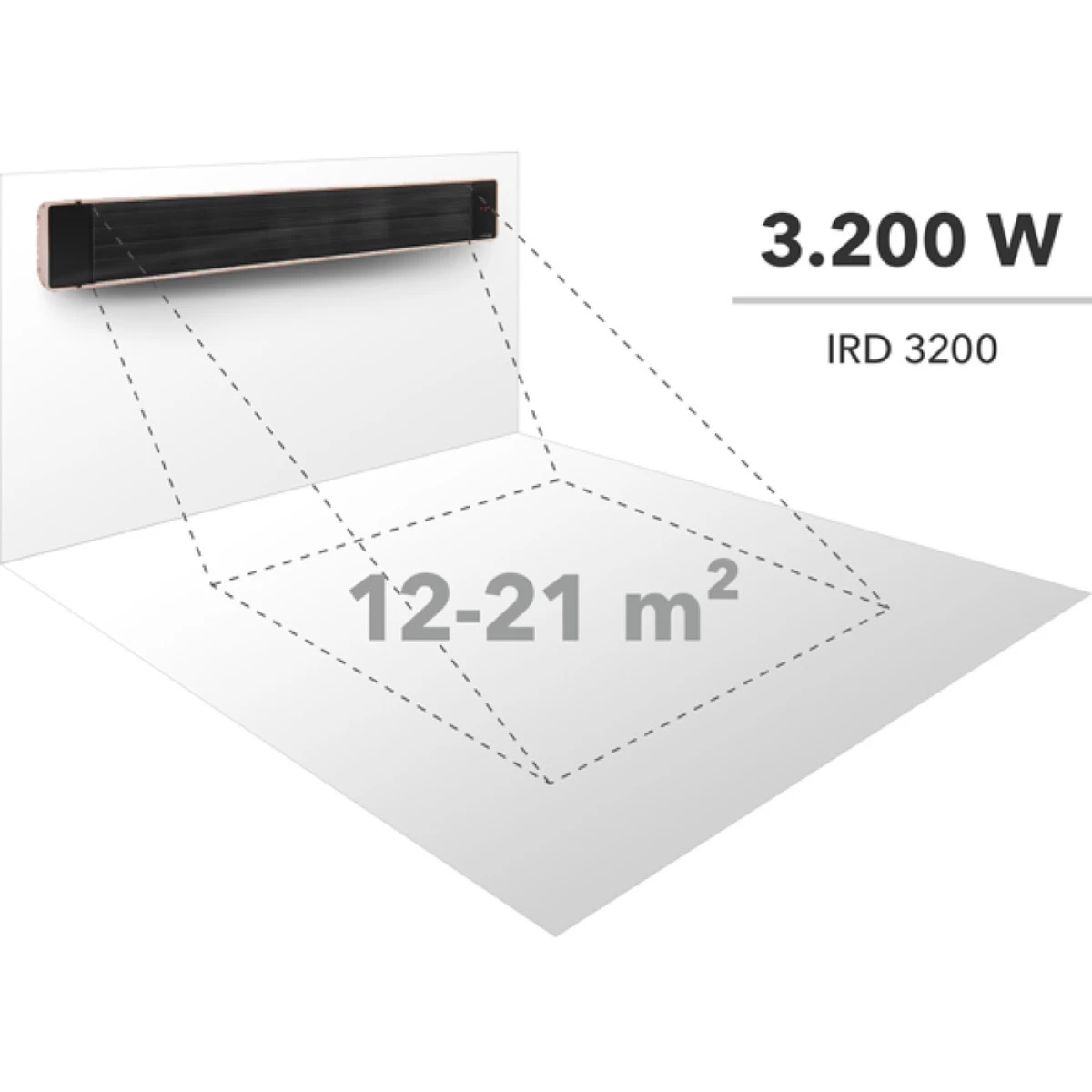 Grâce au rayonnement infrarouge moyen et lointain, l’IRD 3200 génère une chaleur homogène et ciblée sans chauffer l’air ambiant. Ce chauffage est équipé d’une horloge 24 heures, d’un voyant indiquant le fonctionnement ainsi que d’un affichage à LED. Comme il fonctionne sans tubes, il est sans entretien. L’IRD 3200 peut être monté au mur ou au plafond grâce au kit de fixation fourni.