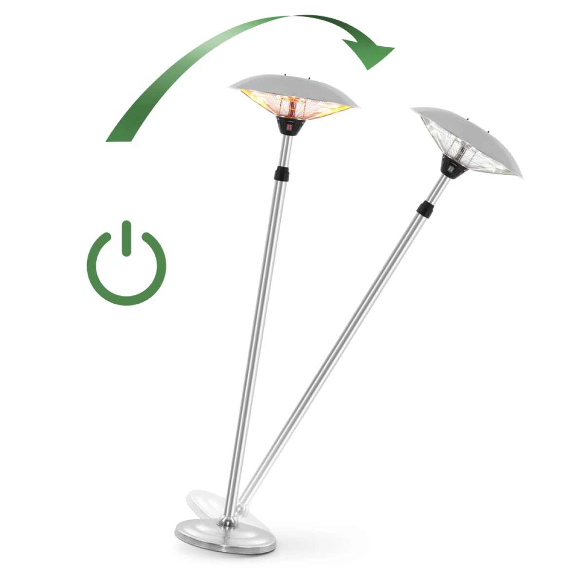 En parlant d’extensions : le tube télescopique réglable en hauteur en continu avec un dispositif de blocage pratique permet de régler la hauteur de rayonnement de 1,94 m jusqu’à 2,09 m. Cela signifie que l’unité peut être adaptée individuellement pour une utilisation ciblée sur des tables hautes, des groupes de sièges ou des chaises longues.